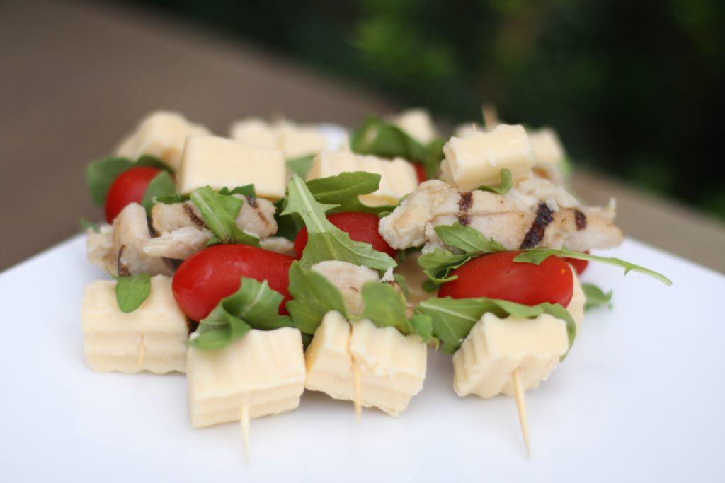 Combination of fresh basil, gouda, chicken and tomatoes. Simple but still classy enough for a dinner party or wine tasting.