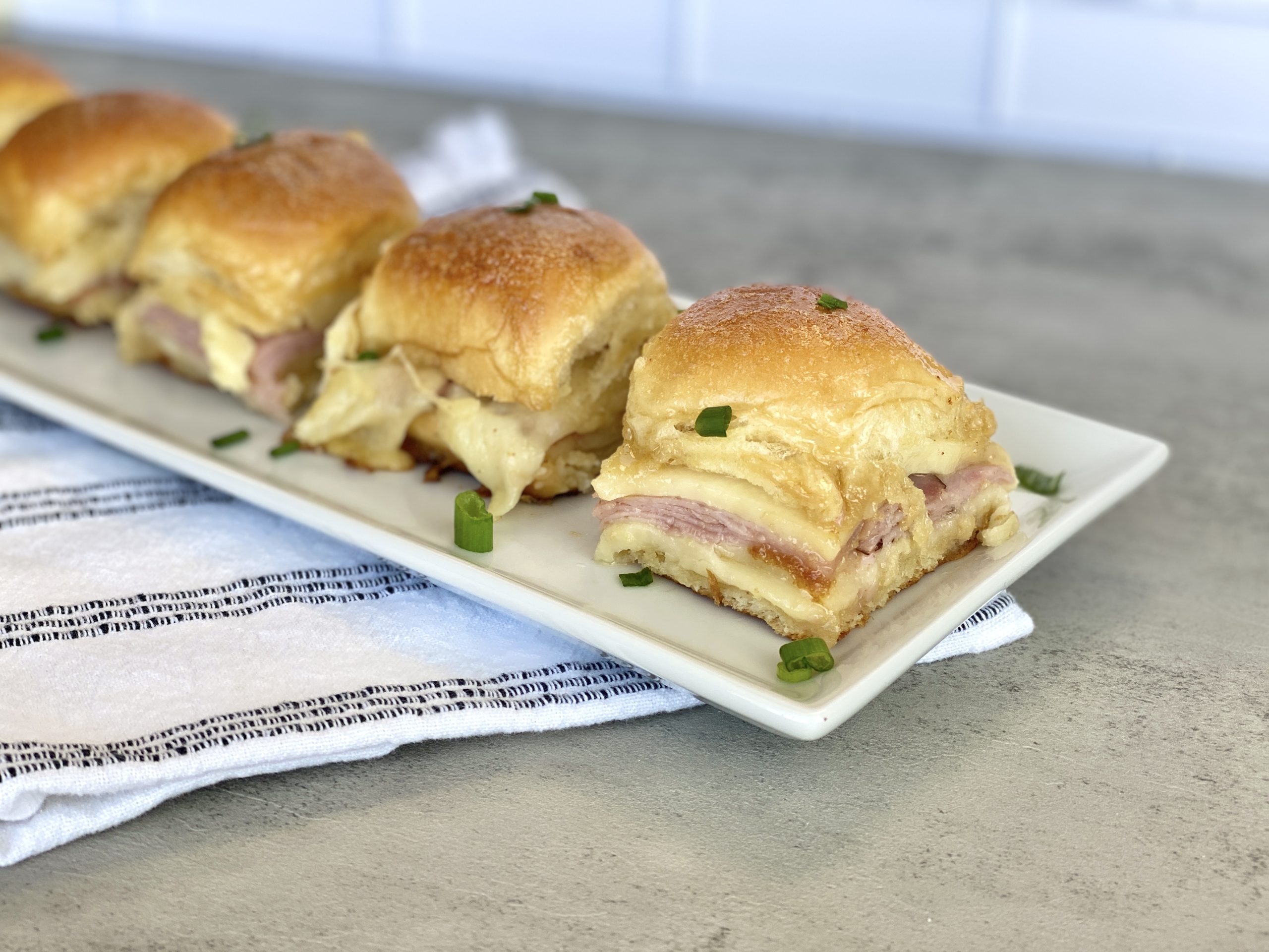 Top with a layer of cheddar cheese, then a layer of ham, and one last layer of cheddar cheese