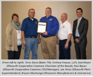 We were honored and proud to receive a visit today from Bryson Machonga, representing Wisconsin Manufacturers & Commerce. He presented our CEO/Manager, Paul Bauer, with a plaque acknowledging Ellsworth Cooperative Creamery’s nomination for Wisconsin Manufacturer of the Year.