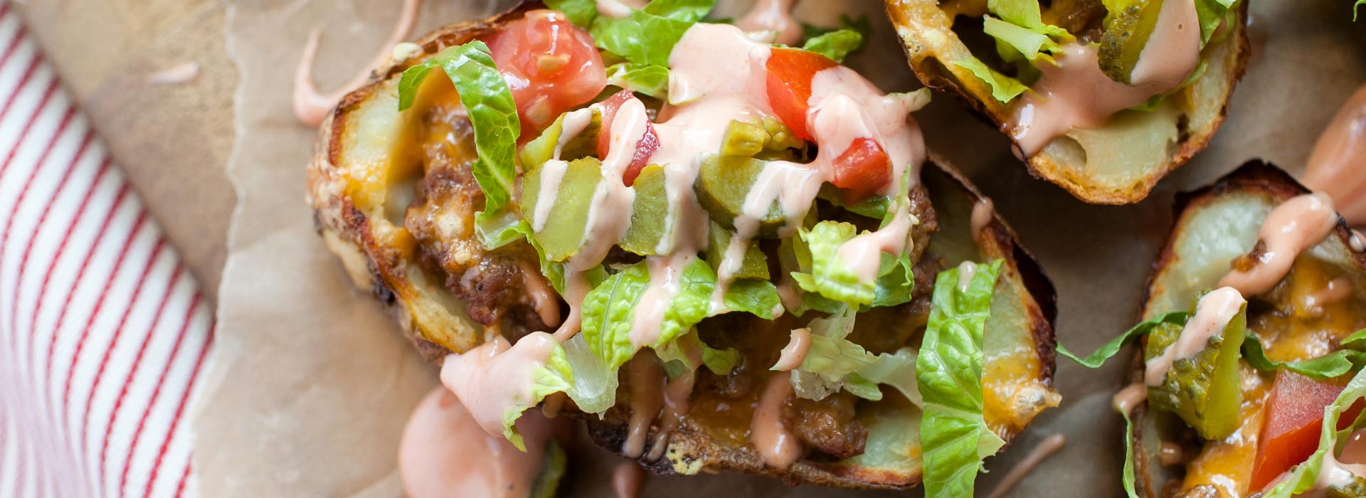 Wisconsin Cheddar Cheeseburger Potato Skins